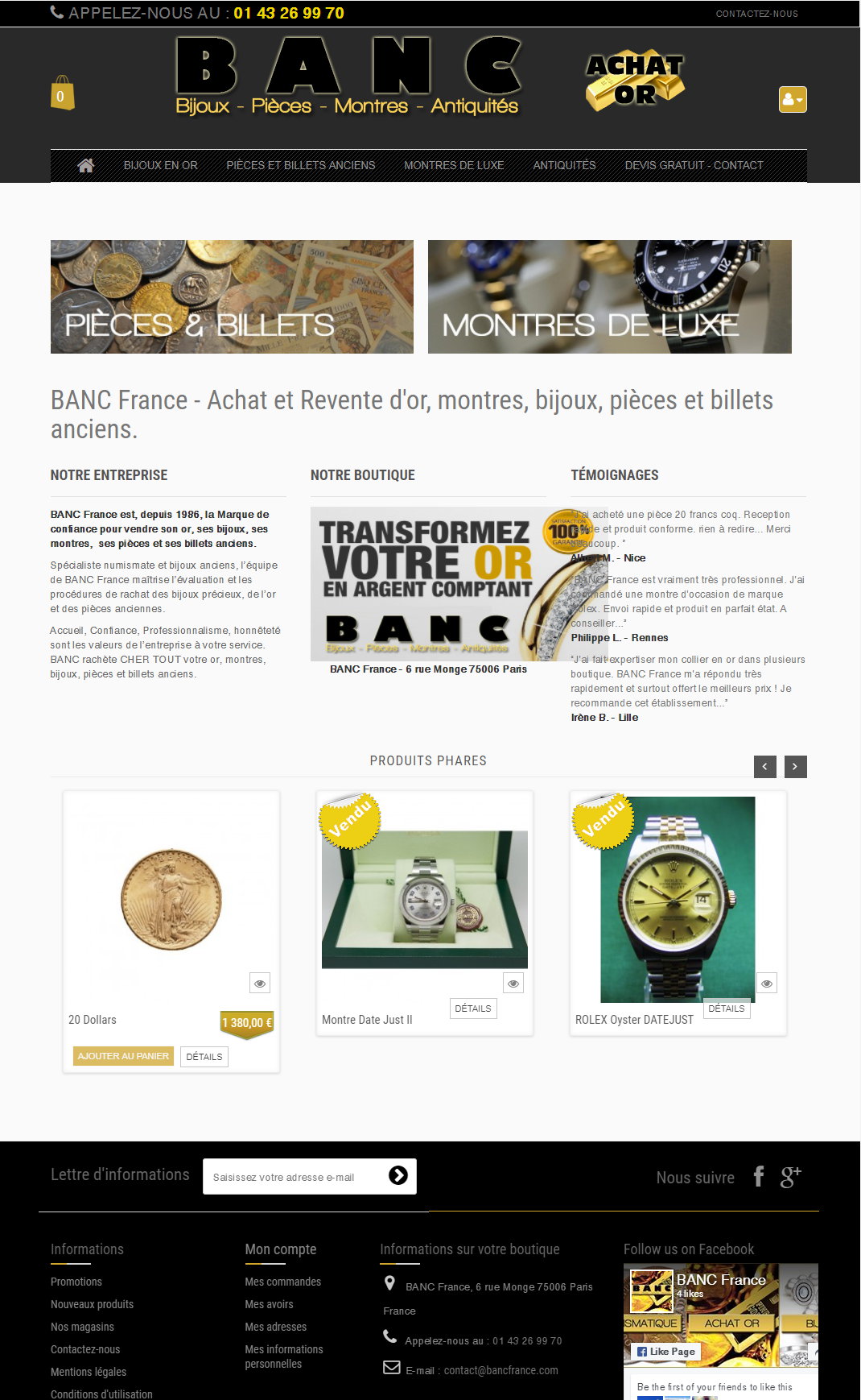 achat or Paris France BANC - montre luxe d'occasion Paris France BANC